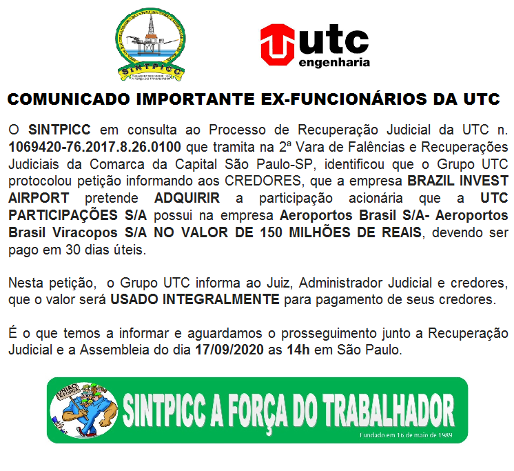 de forma TELEPRESENCIAL. No tocante aos ex- trabalhadores da UTC que tenham quaisquer dúvidas sobre