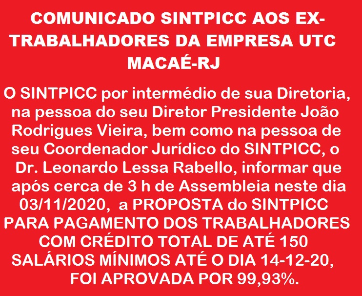 O SINTPICC vem por meio do seu Diretor Presidente João Rodrigues